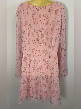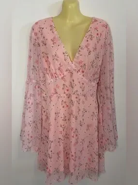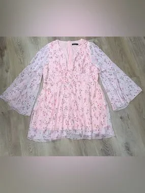 Double Crazy Pink Floral Bell Sleeve Mini Dress