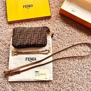Brand new. Gifted to me. I don’t have a receipt, but I have the ID card pictured. Comes with the box, bag and Fendi ribbon. This is a lovely purse, but not my style.