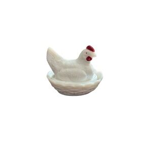 Westmoreland Glass, Milk Glass, Hen on Nest, Vintage Chicken Dish, Farmhouse Decor, Cottagecore, Grandmacore, Mid Century Modern Glass, Animal Covered Dish, Red Comb Hen, Kitschy Kitchen, Shabby Chic, Trinket Bowl, Easter Decor, Collectible Glassware.