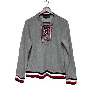 Tommy Hilfiger Grey Long Sleeve Hockey Lace Up Sweatshirt Women's Size Medium