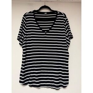 Old Navy Luxe Striped V Neck T Shirt Black White Plus Size XL