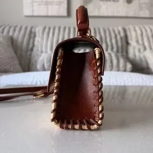 J.Crew Leather and Wicker Mini Satchel Crossbody Bag Brown Tan Whipstitch