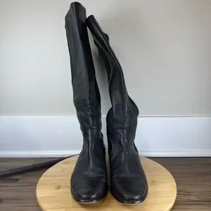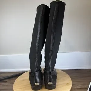 Coach Liza Tall Boots Women 7B Black Leather Stretch Buckle Knee High A8794 Good