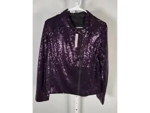 NWT Colleen Lopez Purple Sequin Moto Jacket Sparkly Evening Blazer Size XL