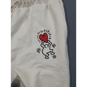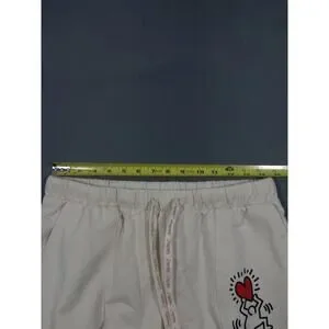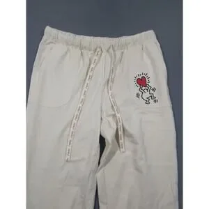 Keith Haring Jogger Lounge Pants Womens Small Cream Graphic Heart Sleepwear.