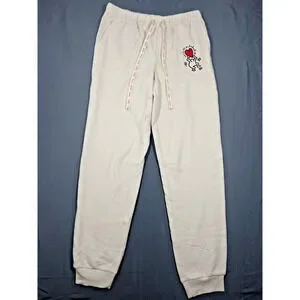 Keith Haring Jogger Lounge Pants Womens Small Cream Graphic Heart Sleepwear