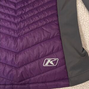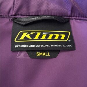 Klim Waverly jacket. Size small. Purple with gray stretch panels. Two zip front pockets. In great condition but missing hood.