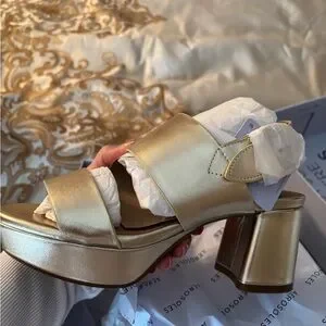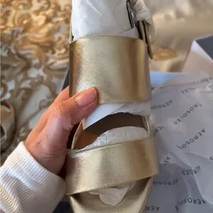 Brand New in Box Aerosoles Camera Gold Metallic Leather Sandals size 5 1/2. Stunning and so refined and elegant.