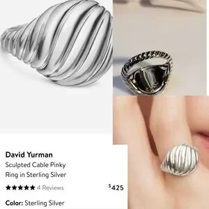 David Yurman sterling silver pinky ring with sculpted cable design. Polished silver finish for a refined, modern look. Comfortable fit and durable sterling silver construction. Adds subtle luxury to everyday wear.