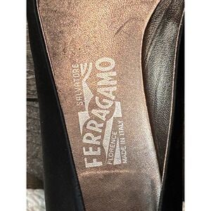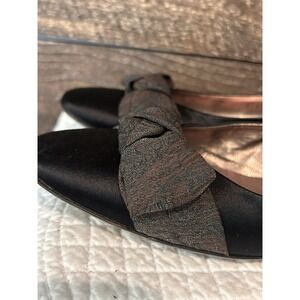 Salvatore Ferragamo Women's Black Silk Ballet Flats with Brown Satin Bow 8