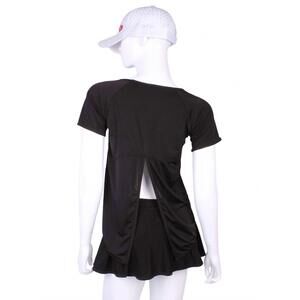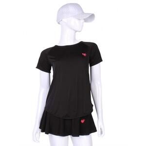 NEW LOVE LOVE TENNIS women's tie back short sleeve tee in black