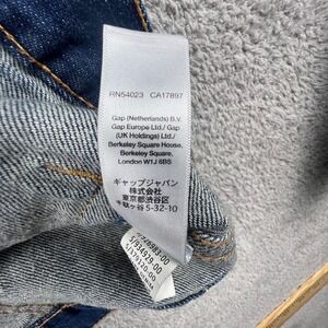 Gap 1969 denim jacket features a medium wash with classic fading and whiskering for a lived-in look. Constructed from durable blue denim, this trucker-style jacket includes a button-front closure with branded copper-tone hardware, two button-flap chest pockets, and two welt hand pockets. The back is designed with adjustable button tabs at the waist for a customizable fit, while the long sleeves finish with button cuffs.
