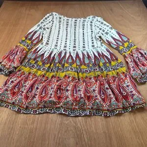 Umgee Tunic Top Womens Medium Boho Floral Long Sleeve Flowy Blouse