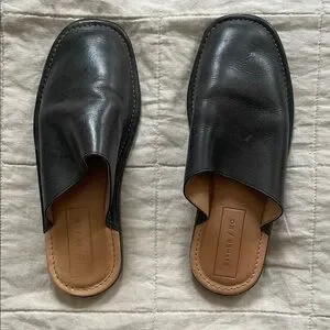 Either/Or Black Leather Mules
