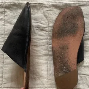 Black slip on slides by Canadian brand either/or