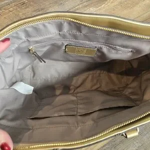 Anne Klein Metallic Cork & Gold Satchel Handbag - Chic Structured Tote