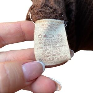 Chic brown V-neck sweater. Features a cozy knit design. Ideal for layering.