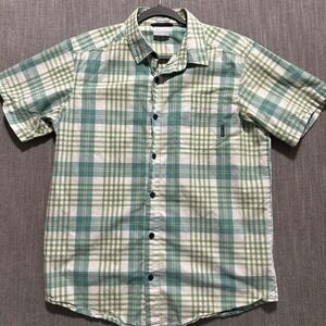 Columbia Mens Short Sleeve Button Up Shirt Lot 2 Plaid Striped Cotton Green M