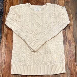 Cozy cream cable knit sweater. Perfect for chilly days. See photos for small imperfections on sweater bottom right and sleeve