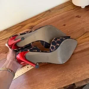 Betsey Johnson Leopard Print Pumps with Red Stiletto Heel