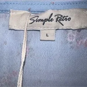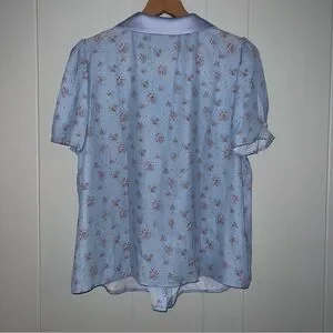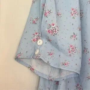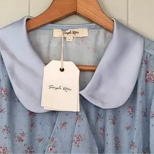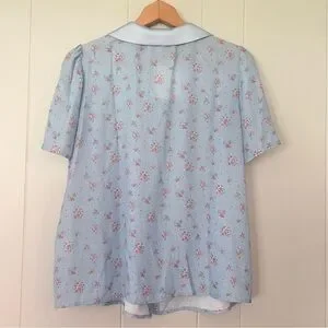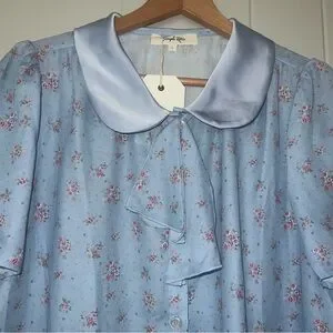 Simple Retro Blue Pink Romantic Bohemian Peter Pan Collar Button Down Top NWT L