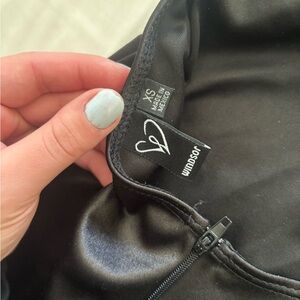 Classic black dress with a fitted bodice. Cross-back straps for a flattering silhouette. Smooth, minimal design for versatile wear.