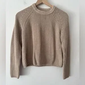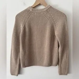 Soft ribbed knit with a classic crew neckline. Neutral taupe hue for easy styling. Long sleeves and a relaxed fit. Everyday versatile sweater.