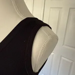 Black Ribbed V-Neck Cropped Tank Top Size S Basic Fitted Stretch