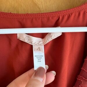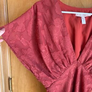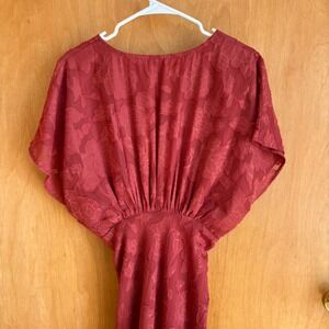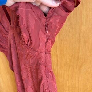 Hutch Floral Burnout Maxi Dress Women 4 Rust Flutter Sleeve V-Neck Gown