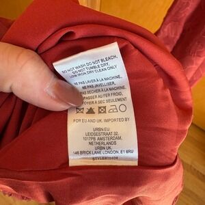Hutch floral burnout maxi dress in a rich burgundy wine hue features a deep V-neckline and elegant flutter sleeves. The bodice is beautifully gathered at the waist, leading into a flowing floor-length skirt that creates a stunning silhouette. Crafted with a textured rose pattern throughout, this gown is fully lined for comfort and finished with a discreet side zipper. This item is in excellent pre-owned condition. Perfect for a black-tie wedding, gala, or formal evening event.