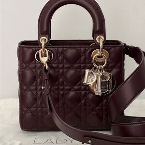 Christion Dior Lady Deep Burgundy Quilted Leather Lady Small ABC Rouge noir