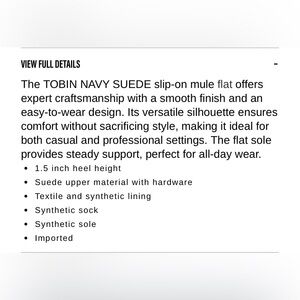 Item(s): Tobin Navy Suede Slip-On Mule Flat