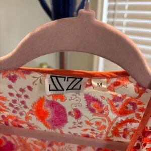 Stunning SZ Blockprints padra print bright floral dress featuring a gorgeous pink and orange print. Bright floral tunic dress with pink and coral print. This chic dress is 100% cotton from a smoke free pet free home.