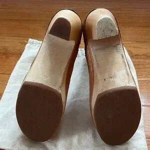 Vintage Swedish HASBEENS perforated leather tan clog platform boots. Giving 70s charm for daaayyys. In great condition; missing rubber tread on one heel but otherwise perfect. Size 38. 3 inch heels. Message for any further details!