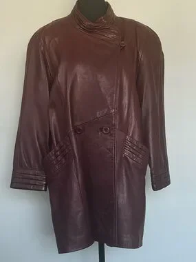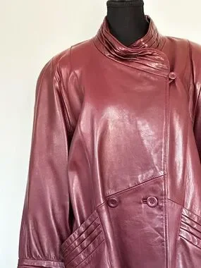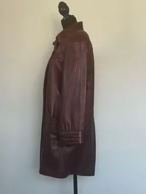 Stunning vintage 1980s leather coat in a rich burgundy tone, crafted from incredibly soft, supple leather that feels like butter.