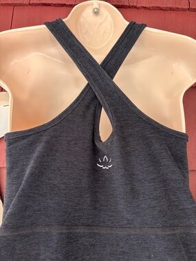 Sleek racerback tank from Beyond Yoga. Soft stretch knit fabric with smooth finish. Minimal logo at interior neckline. Neutral charcoal gray for easy pairing.