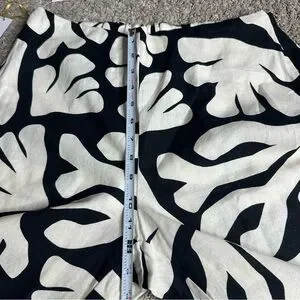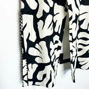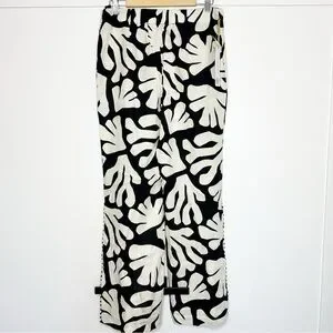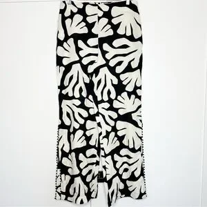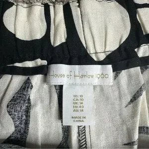 House Of Harlow 1960 Linen Blend Black Cream Wide Leg Side Slit Pants 10 boho