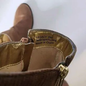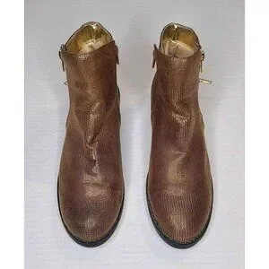 Bellini Legacy Bootie Brown Lizard Design Inside Zip Gold Zipper Design Round Toe Size 8M