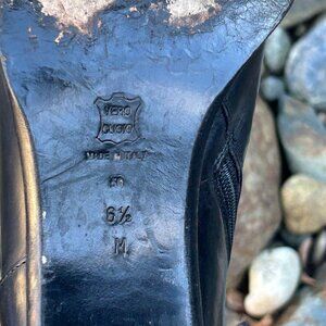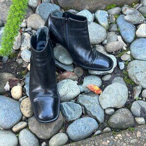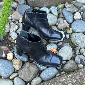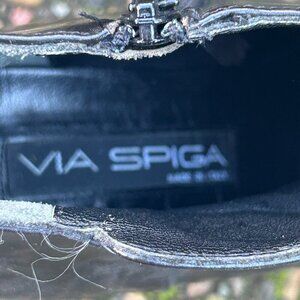 Via Spiga Boots Black Leather Ankle Booties Block Heels Size 6.5 M