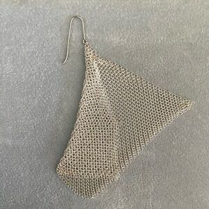 Tiffany & Co. Elsa Peretti Elegant Iconic sterling silver mesh scarf necklace and matching earrings. Sleek metallic shine that drapes fluidly over the body’s contour. Definitely a conversation piece. Dust cover has a backing replaced with grey felt.