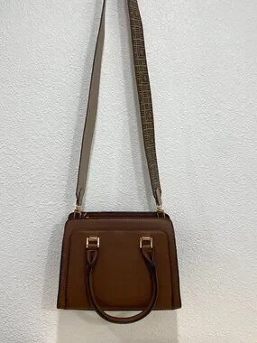 Anne Klein Cognac Satchel - Includes 2 Straps! Monogram & Matching Leather