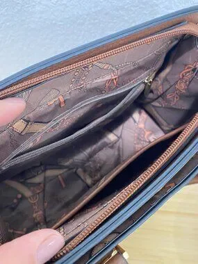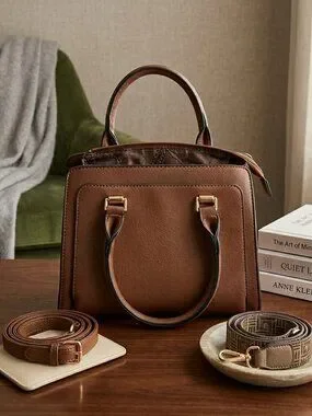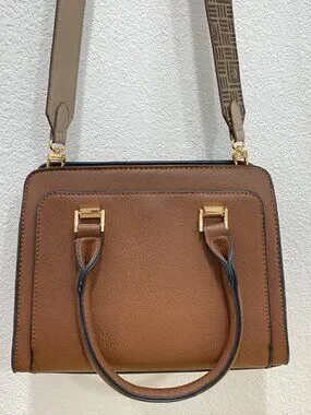 Anne Klein Bag, 2 Straps, Interchangeable Strap, Monogram, Guitar Strap, Cognac Purse, Professional Bag, Vegan Leather, Triple Compartment, Versatile.