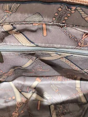 Get two looks in one with this stunning Anne Klein satchel. This "Like New" bag comes with both the classic matching cognac faux leather strap and a trendy, wide jacquard monogram guitar strap. Perfectly organized and versatile for work or the weekend.