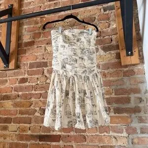 Abercrombie & Fitch Strapless Cream Mini Dress with Black Print