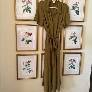 H&M Olive Green Women's Collared V-Neck Shirt Dress
