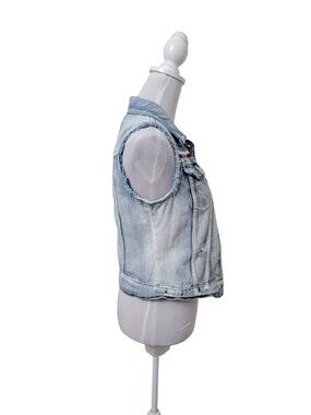 Mudd Size S Denim Distressed Blue Jean Vest, Boho, Button Front