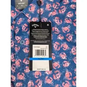 Callaway Mens XL Opti-Dri Golf Polo Galaxy Blue Pink Crab Print UPF 50 NWT