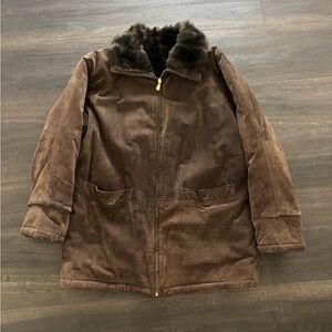 Vintage 90s Womens Reversible Suede Brown Leather Faux Fur Jacket