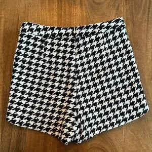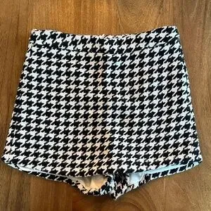 Stylish black and white houndstooth skort. Tailored for a polished fit and easy pairing with tops and blazers. Soft textured fabric provides comfortable wear throughout the day. Classic monochrome pattern elevates any outfit. Back zip closure.