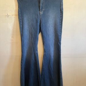 High-rise flare silhouette. Soft vintage wash denim. Flared legs for a retro-inspired look. Clean seams and subtle fading. Easy to style for casual outfits.
